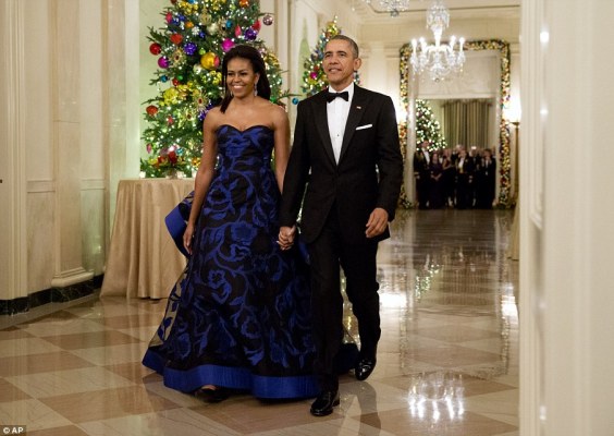 Barrack & Michelle Obama looking great at White House reception President Obama in tux and First Lady Michelle Obama in a dazzling sleeveless black dress with blue overlay held hands and smiled as they as they arrived at the State Department Dinner in the East Room of the White House on Saturday night for the […]
