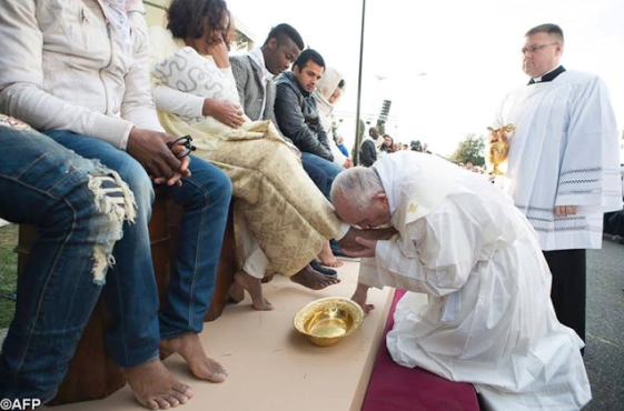 Photos: Pope Francis kisses and washes feet of Muslim, 4 Nigerian Catholics and Hindu refugees in Easter ritual