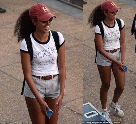 Malia Obama wears ‘Smoking kills’ tee-shirt at Made In America festival US President Obama’s oldest daughter who was seen at lollapalooza music festival in Chicago in early August was seen wearing a T-shirt which read ‘Smoking kills’ and short shorts at the Made in America festival in Philadelphia.
